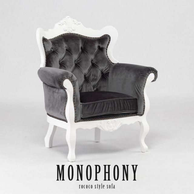 Monophony モノフォニー e1167シリーズ 1人掛け ソファ ホワイトフレーム×スモーキーグレー ベルベット e1167-1-18f279b リプロ C 84*67*99