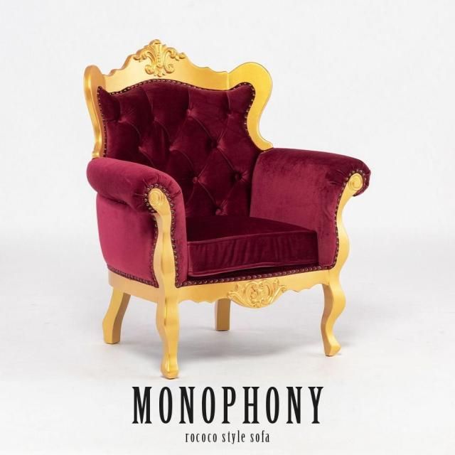 Monophony モノフォニー e1167シリーズ 1人掛け ソファ イエローゴールドフレーム×レッド ベルベット e1167-1-12f280b リプロ C 84*67*99