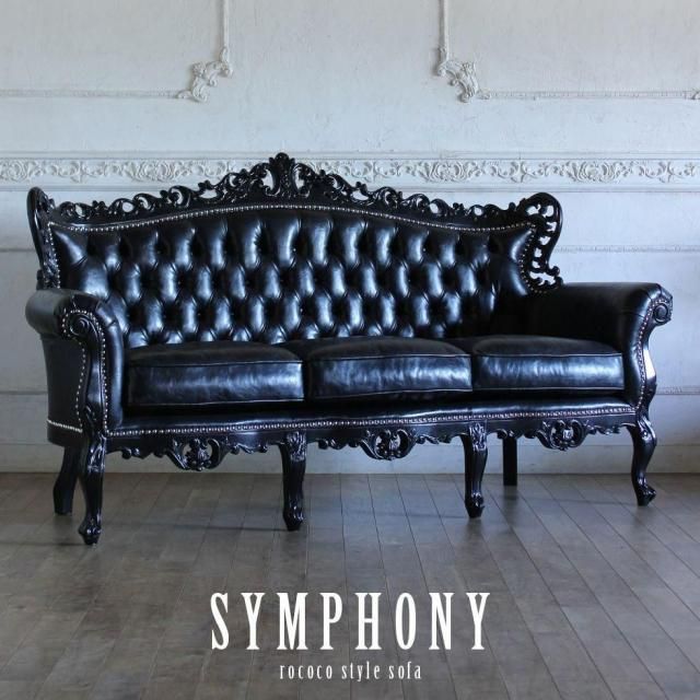 ロココソファ e1166シリーズ 2人掛け ブラックフレーム×ブラックダマスク(ファブリック) e1166-2-8f1 リプロ D 140*60*100