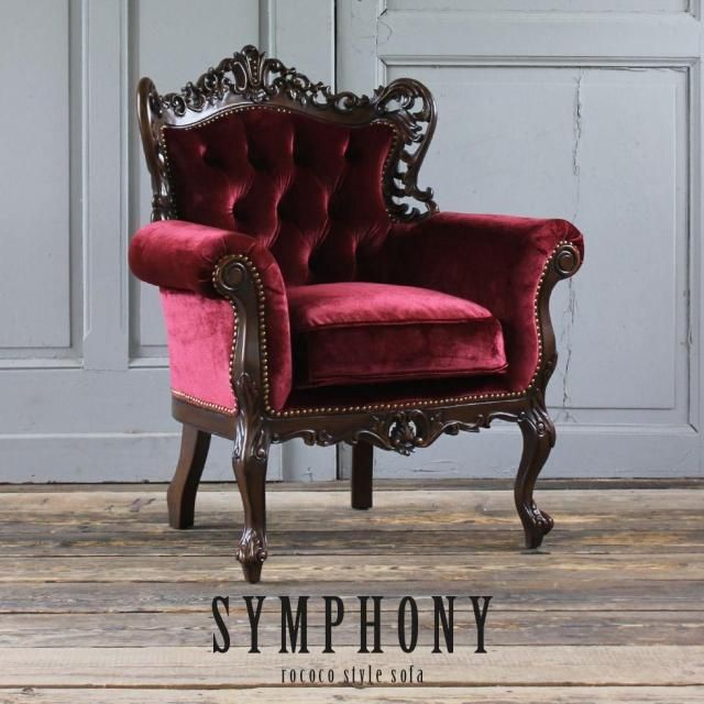 Symphony シンフォニー e1006シリーズ ソファ 1人掛け ブラウンフレーム×レッド ベルベット e1006-1-sh-5f280b リプロ C 85*65*100