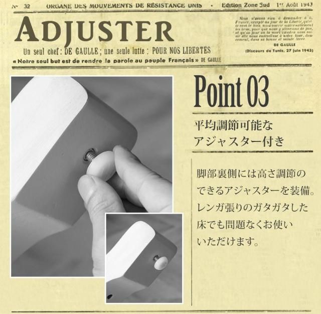 脚部裏側には高さ調節のできるアジャスター付き