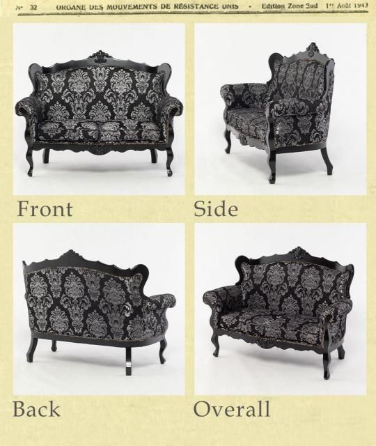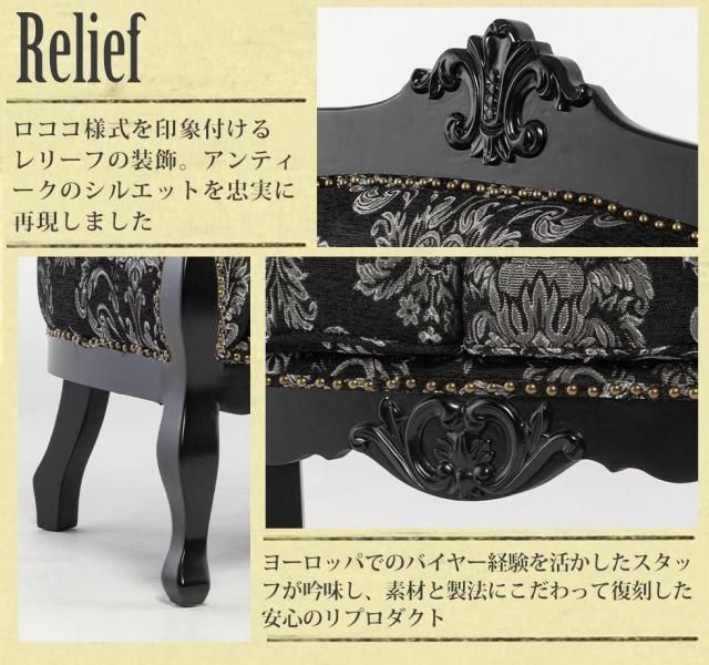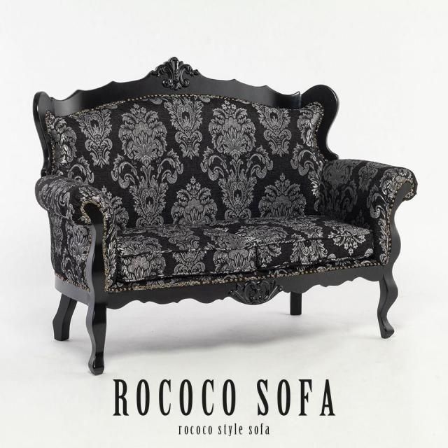 ロココソファ e1166シリーズ 2人掛け ブラックフレーム×ブラックダマスク(ファブリック) e1166-2-8f1 リプロ D 140*60*100