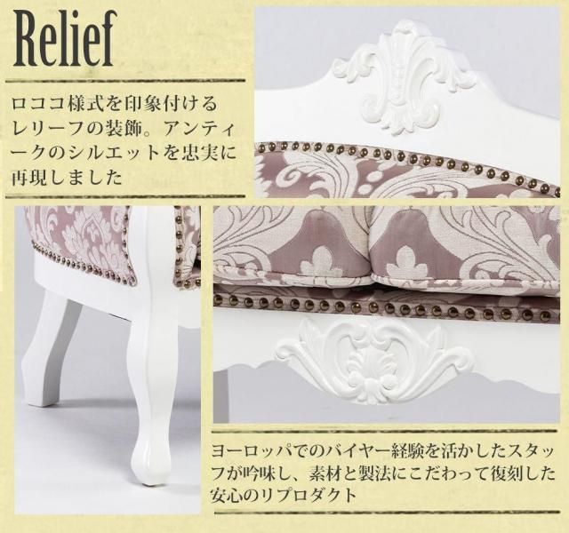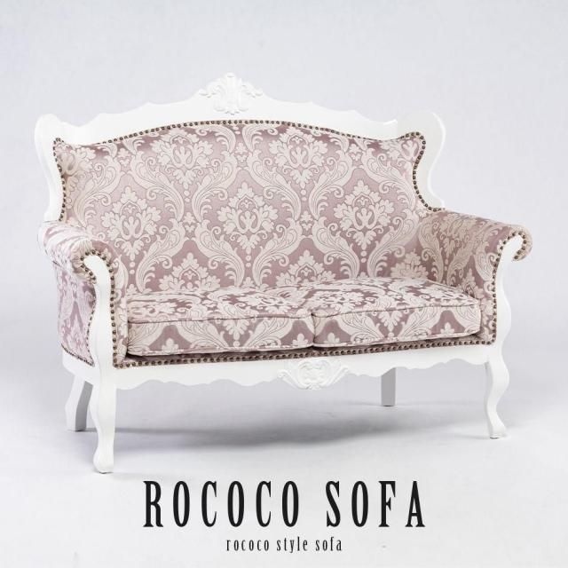 ロココソファ e1166シリーズ 2人掛け ホワイトフレーム×ピンクダマスク(ファブリック) e1166-2-18f68 リプロ D 140*60*100