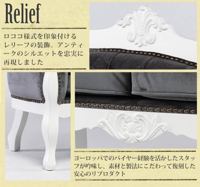 ロココソファ e1166シリーズ 2人掛け ホワイトフレーム×スモーキーグレー ベルベット e1166-2-18f279b リプロ D 140*60*100