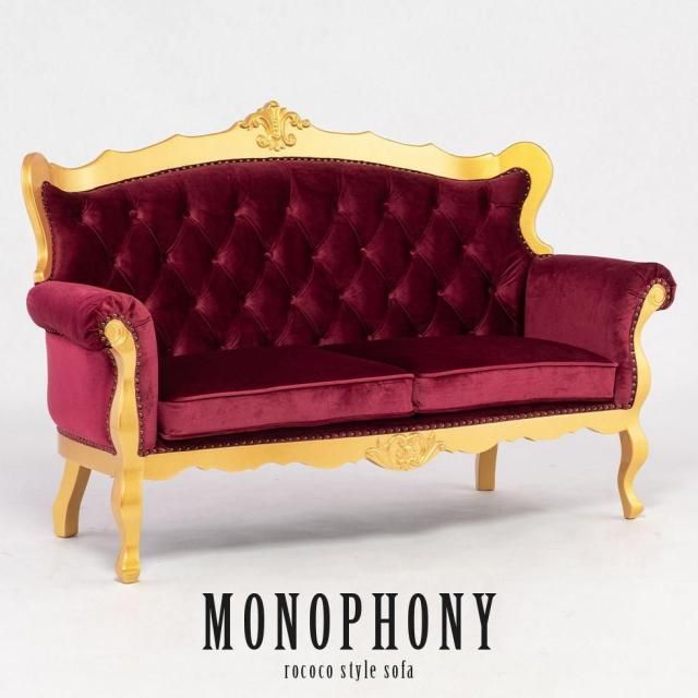 Monophony モノフォニー e1167シリーズ 2.5人掛け ソファ イエローゴールドフレーム×レッド ベルベット e1167-25-12f280b