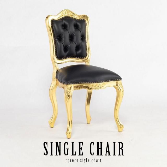 ロココ調 シングルチェア 6085シリーズ ゴールドフレーム×ブラックPUレザー(合皮) st6085-10p32b