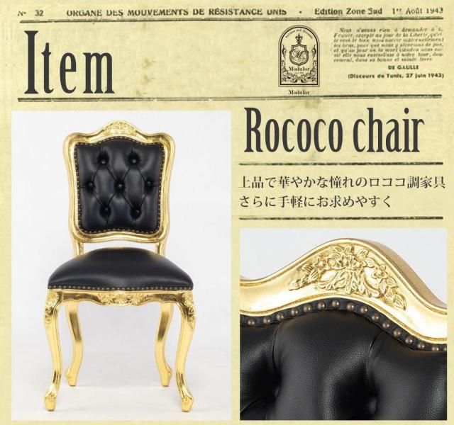 ロココ調 シングルチェア 6085シリーズ ゴールドフレーム×ブラックPUレザー(合皮) st6085-10p32b リプロ B 49*52*92